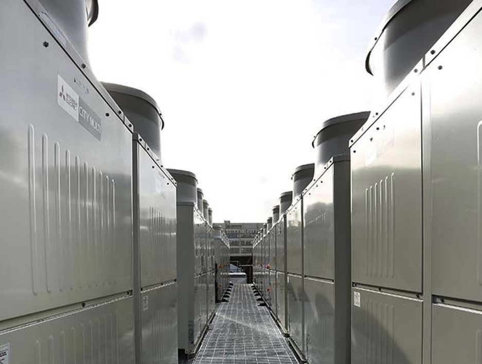 VRV/VRF efficient large capacity systems, allowing heating and cooling from individual indoor units within a single zone or multiple rooms